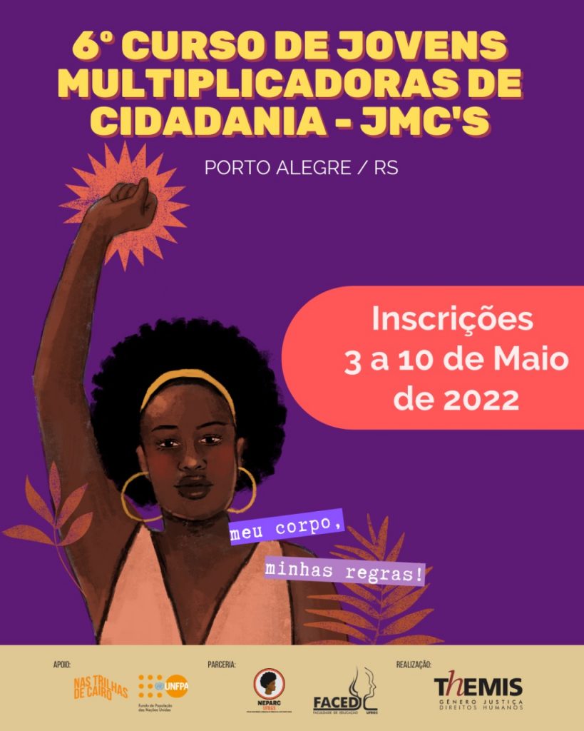 Estão abertas, até 10 de maio, as inscrições para a 6º Formação de Jovens Multiplicadoras de Cidadania, promovido pela Themis – Gênero, Justiça e Direitos Humanos. O curso de formação jurídico-feminista é destinado para jovens moradoras da periferia de Porto Alegre, com idade entre 15 e 20 anos, que desejam qualificar e fortalecer seu protagonismo, […]