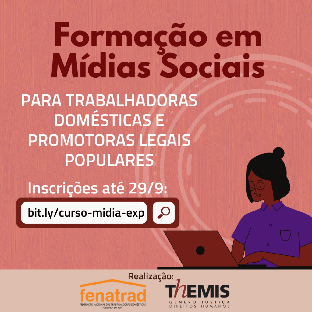 Estão abertas até 29 de setembro as inscrições para a Formação em Mídias Sociais para incidência política e fortalecimento do movimento das trabalhadoras domésticas e das Promotoras Legais Populares (PLPs), por meio de tecnologias da informação e comunicação. A ação é promovida pela Themis e pela Federação Nacional das Trabalhadoras Domésticas (Fenatrad), com a realização […]