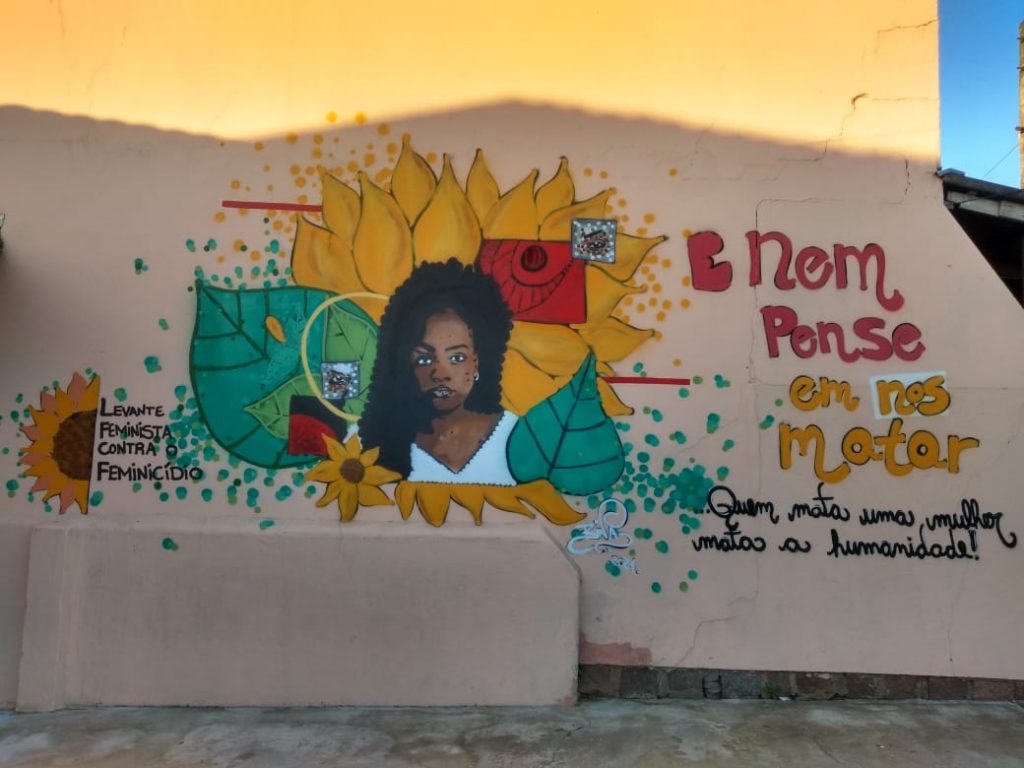 Themis e Promotoras Legais Populares (PLPs) pintam muros para marcar lançamento de campanha nacional contra o feminicídio