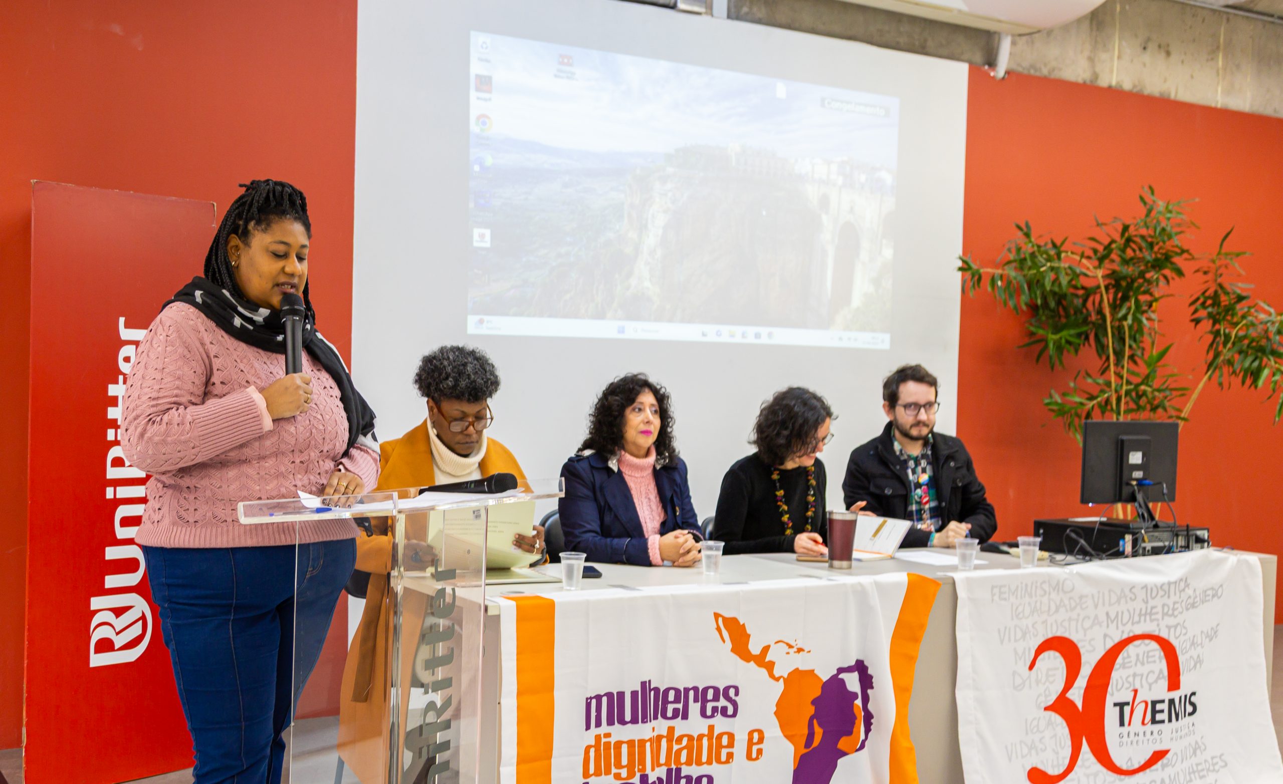Na última sexta-feira (27/6), 45 mulheres de Porto Alegre e da Região Metropolitana comemoraram a conclusão do Curso de Profissionalização e Empoderamento Legal para Trabalhadoras Domésticas Remuneradas, promovido pela Themis – Gênero, Justiça e Direitos Humanos. A cerimônia, realizada na UniRitter – Campus Fapa, celebrou o encerramento de uma trajetória marcada pelo aprendizado, acolhimento e fortalecimento coletivo.