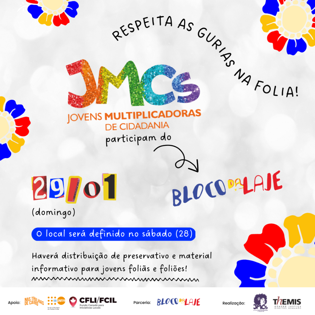 Olá, galera! Nós somos as Jovens Multiplicadoras de Cidadania (JMCs), formadas pela Themis, e amamos pular Carnaval. Desde criancinhas somos foliãs em ensaios de escolas de samba e blocos nas nossas comunidades. Queremos nos divertir, dançar e paquerar sem medo. Beijar ou transar, só quando a gente quiser! O Carnaval deve ser tempo de diversão, […]