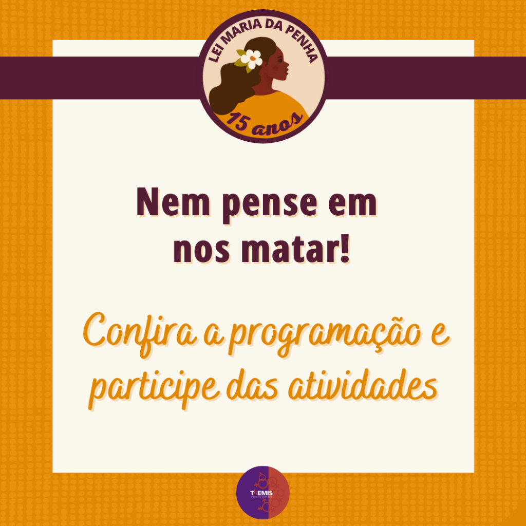 Neste sábado (7/8), completam-se 15 anos da Lei Maria da Penha, um marco no enfrentamento à violência contra às mulheres. Para celebrar a data, há uma série de atividades programadas ao longo do mês de agosto. Confira a programação completa em bit.ly/15anos_LMP e agende-se! Entre as atividades, a Themis realiza, neste sábado (7/8), um encontro […]