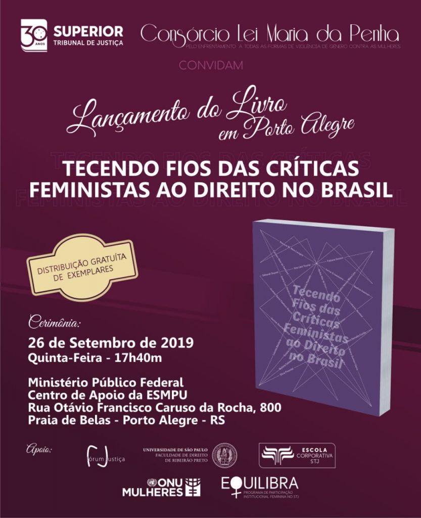 Na próxima quinta-feira (26), às 17h40, ocorre o lançamento do livro Tecendo fios das críticas feministas ao direito no Brasil, no Ministério Público Federal, em Porto Alegre (Rua Otávio Francisco Caruso da Rocha, 800). A obra é organizada pelo Consórcio Lei Maria da Penha pelo Enfrentamento a Todas as Formas de Violência de Gênero contra […]