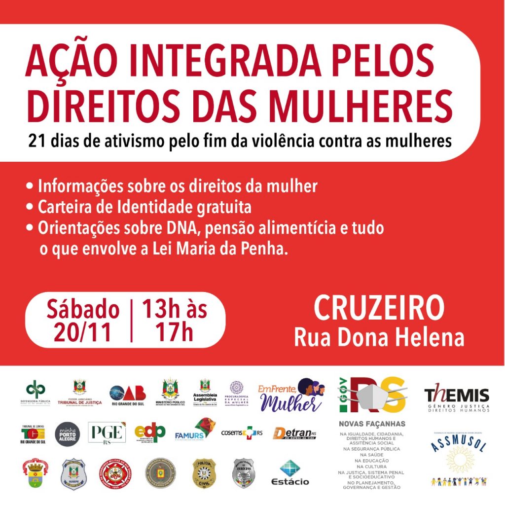 Ação Integrada pelos Direitos das Mulheres leva informação e serviços à comunidade da Vila Cruzeiro no próximo sábado (20/11)