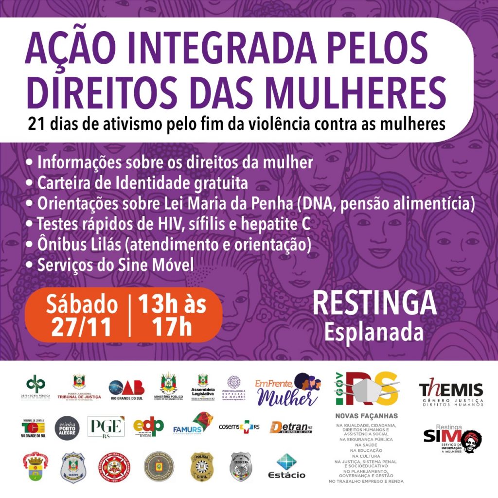Na semana em que se celebra o Dia Internacional de Luta Contra a Violência à Mulher, a Themis dá continuidade, na Restinga, à Ação Integrada pelos Direitos das Mulheres. As atividades ocorrem das 13h às 17h, na Esplanada da Restinga. A ação comunitária oferecerá aos moradores da Restinga informações e orientações sobre os direitos da […]