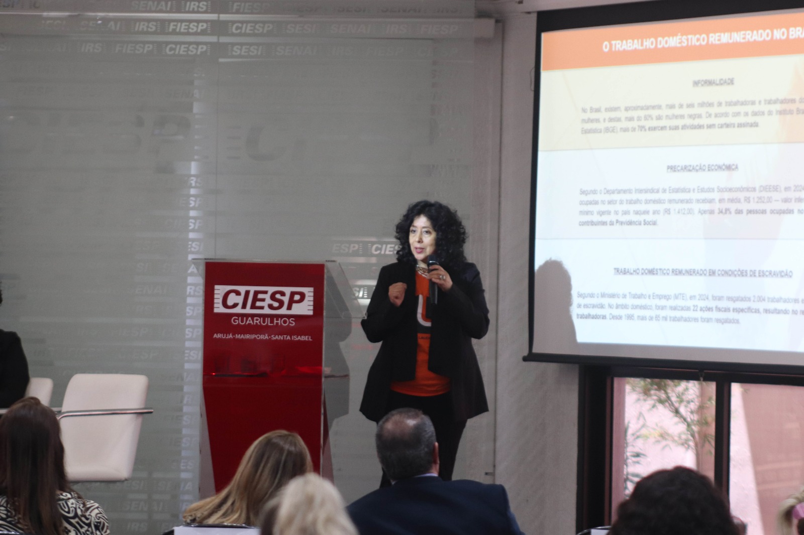 A agenda teve início no Centro das Indústrias do Estado de São Paulo (Ciesp), em Guarulhos, com a presença de empresárias e empresários interessados em promover práticas de responsabilidade social e trabalhista. Foram apresentadas as novas funcionalidades do aplicativo Laudelina, além do Guia de Contratação Responsável, desenvolvido em parceria com a Fenatrad, o Ciesp e a Cummins. “Esse evento trouxe um olhar muito mais amplo sobre a importância da parceria e da contribuição das empresas. É fundamental que o setor privado também assuma seu papel no fortalecimento dos direitos trabalhistas”, destacou Luciana Giles, da Cummins Brasil.
