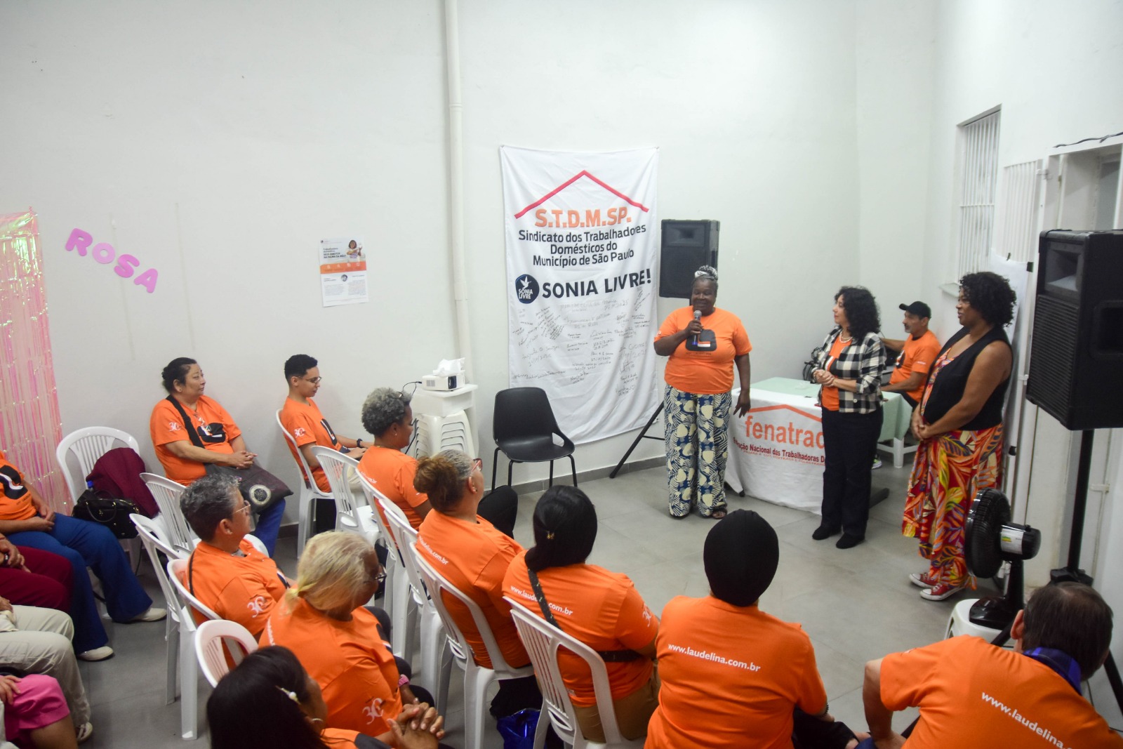 O encerramento das atividades ocorreu no Sindicato das Trabalhadoras Domésticas de São Paulo, em um encontro marcado por celebração e compromisso coletivo. “Hoje estou muito contente porque estamos realizando um evento sobre o aplicativo Laudelina. Somos trabalhadoras domésticas, somos orientadas, somos amparadas e não estaremos sozinhas enquanto existirem o sindicato e o aplicativo Laudelina”, afirmou Marli Oliveira da Silva, do Sindicato dos Trabalhadores Domésticos de São Paulo.