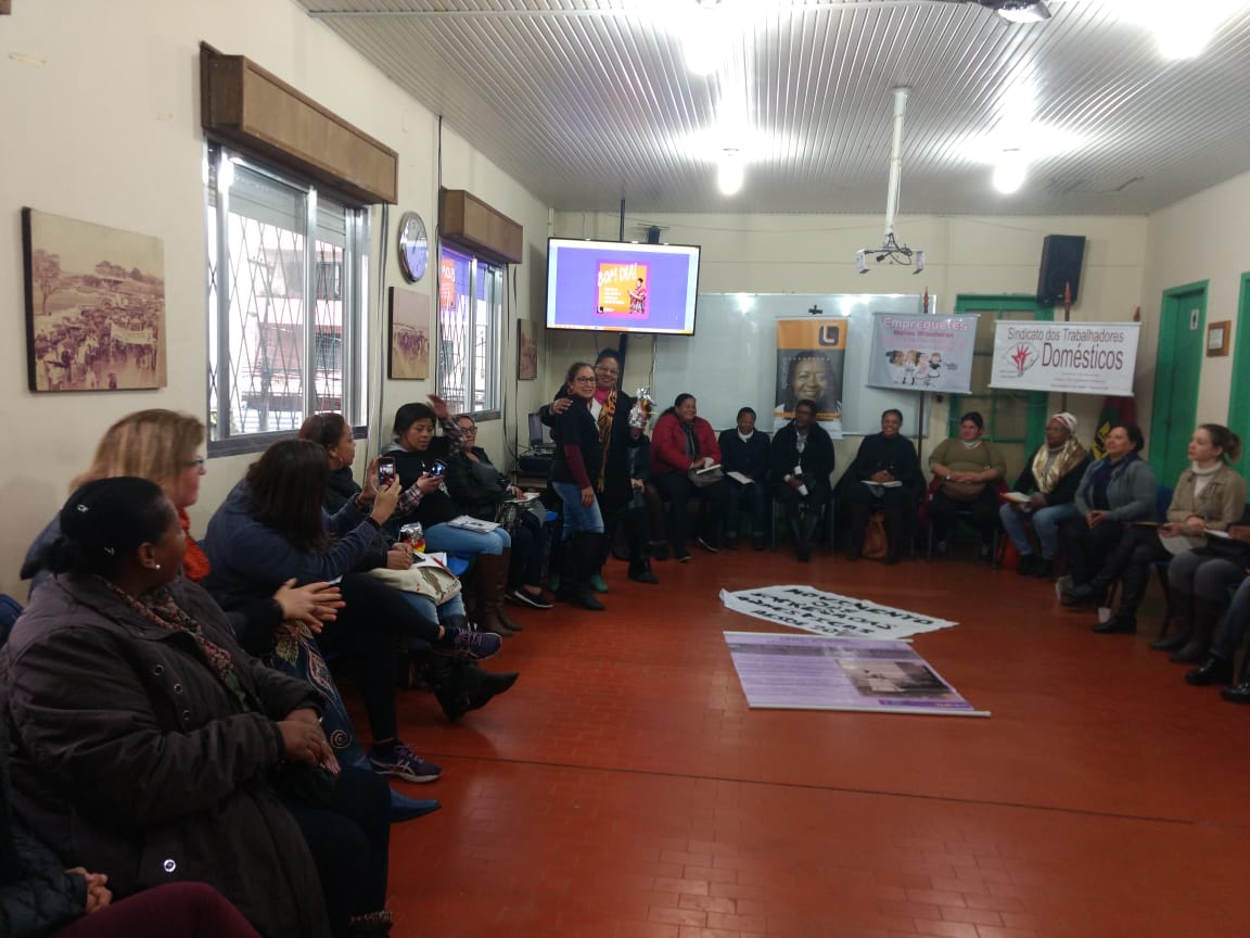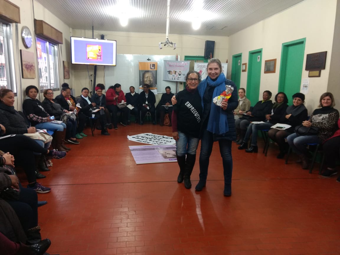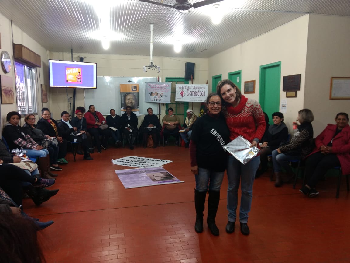 Celebrando 25 anos em 2018, a THEMIS – Gênero, Justiça e Direitos Humanos realizou no último domingo (1o) a divulgação do aplicativo Laudelina em Porto Alegre. A atividade foi realizada no Sindicato dos Petroleiros do Rio Grande do Sul. O evento começou com a roda de conversa sobre os direitos das trabalhadoras domésticas “Trabalho Doméstico Digno: Conjuntura e Desafios”, que teve as falas da técnica do Dieese, Lúcia Garcia, e a vice-presidenta do Sindicato das Trabalhadoras Domésticas da cidade de Pelotas, Ernestina Pereira.